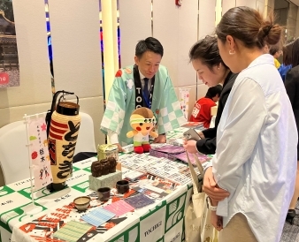 会場内には、複数の日本の地方自治体によるブースが設けられ、パンフレットの配布や日本各地の日本酒、ワイン、梅酒等の提供が行われました。
