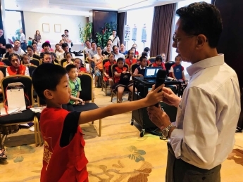 小松总领事致辞、领馆工作人员简单介绍日本概况以后,家长们也和孩子们一起一边体验关联的趣味知识竞答等日本小学生的日常游戏,一边体验日本文化。随后,在原本作为“记者”进行的总领事采访环节中,小记者们踊跃提问,给大家留下了深刻的印象。