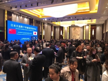 除了在干杯之前举行“清酒开镜”以外,今年的招待酒会上还针对长年为中日交流做出卓越贡献的4名友好人士(注1)举行了总领事表彰;由重庆市川剧院带来的小型川剧表演“人间好”更是锦上添花等;如同与这特殊的年份相称一般,今年的招待酒会华丽充实、有声有色。另外,10家日本地方自治体以及日本企业(注2)也在会场内进行了日本产品、商品的宣传活动。