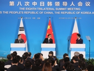 2019年12月24日上午10点到11点15分,在成都举行了第八次日中韩领导人会议。会议概要如下(出席者:日本总理安倍晋三,中国国务院总理李克强,韩国总统文在寅)。会议结束后发布了《日中韩合作未来十年展望》。